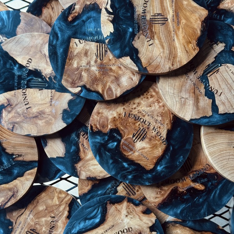 밝은계열인 (소나무,메이플.오동나무)등 나무들을 무작위로 배열하여 에폭시(레진)으로 굳여 마감하여 만들어 집니다.