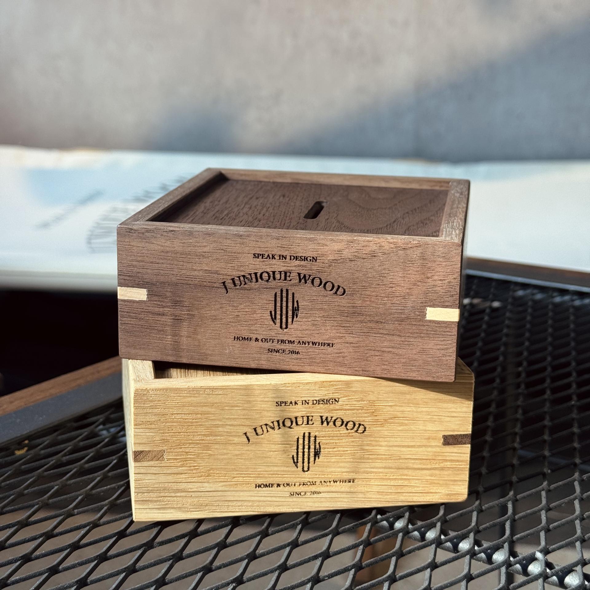원목 형태의 사각 박스 디자인으로 심플하게 제작했습니다.